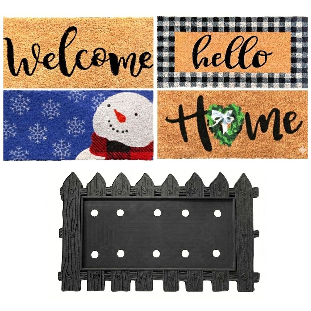Perfect for any front door, "Welcome" your guests to your "Home" in style or just say a simple "Hello" to any visitors! The Autumn Alley rubber picket fence door mat is an adorable, yet functional, addition to any front porch with an inviting wood pattern and drainage holes to keep your entryway clean. The removable and replaceable inserts keep your front door looking fresh for every season or occasion. The coconut coir material is naturally mold resistant and excels at keeping your shoes clean. The removable and replaceable inserts allow for a fresh look for every season or occasion. Say "Hello" in a fun and playful way with our bundle!