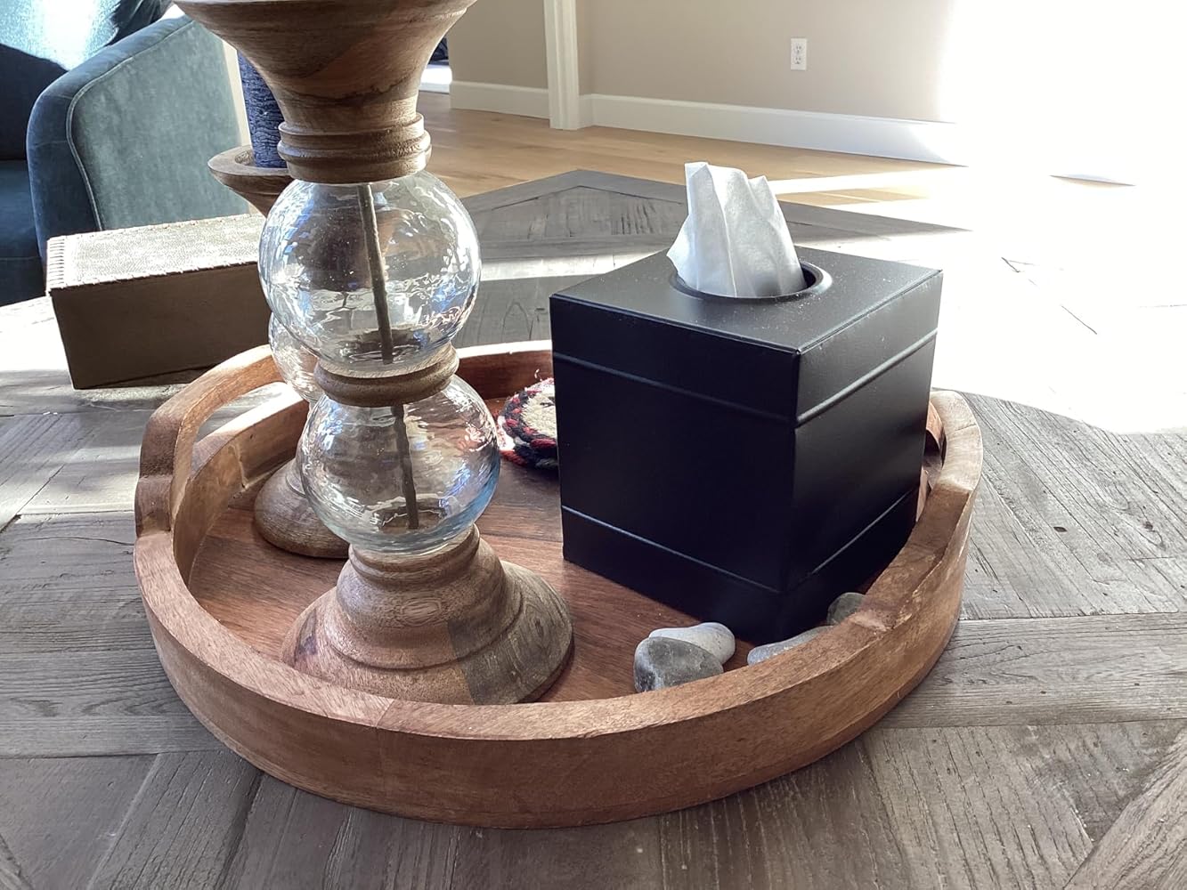 Elevate your farmhouse bathroom with this charming matte black tissue box cover. Crafted from sturdy metal with a curved bottom to protect your tabletops, it holds tissue boxes securely with timeless style. Subtle embossing and a spacious design add classic farmhouse flair while keeping your vanity or shelf neat and organized. A classic and elegant touch for any space!