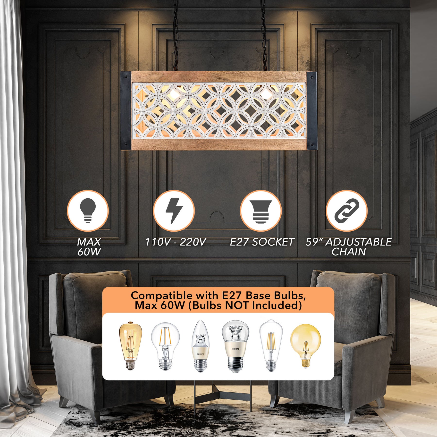 If ever there was a light that could tie it all together, this is it. This light has been designed in such a way that it really ties all the décor and colors together. It looks amazing in a farmhouse style setting, but it would also be perfect for modern, classic or even some industrial looks. I love the way they put the black and white, wood and metal together, as that makes this perfect for so many looks, or you can create your own style. If you are looking for a piece to help tie it all together, this is it.