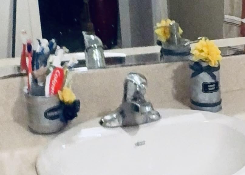 This unique two-piece bathroom set features a beautiful galvanized, matte black, or glossy white finish that will add vintage charm to your farmhouse bathroom. The sturdy and lightweight liquid soap dispenser and toothbrush holder are impeccably coated to protect against corrosion and humidity. With adorable wooden handles, little ball feet, and eye-catching "brush" and "wash" labels, this set adds rustic farmhouse touches to your bathroom while keeping everything organized.