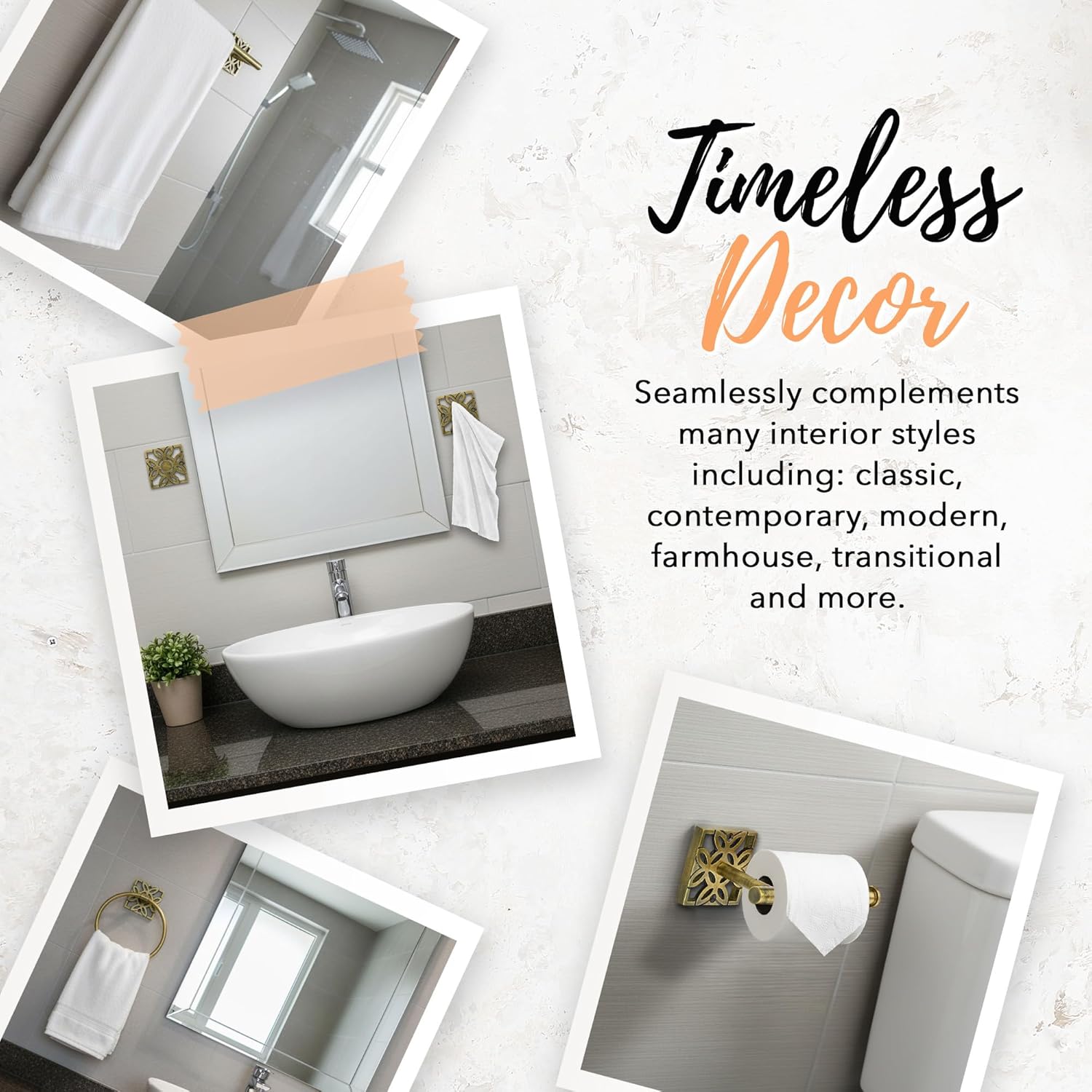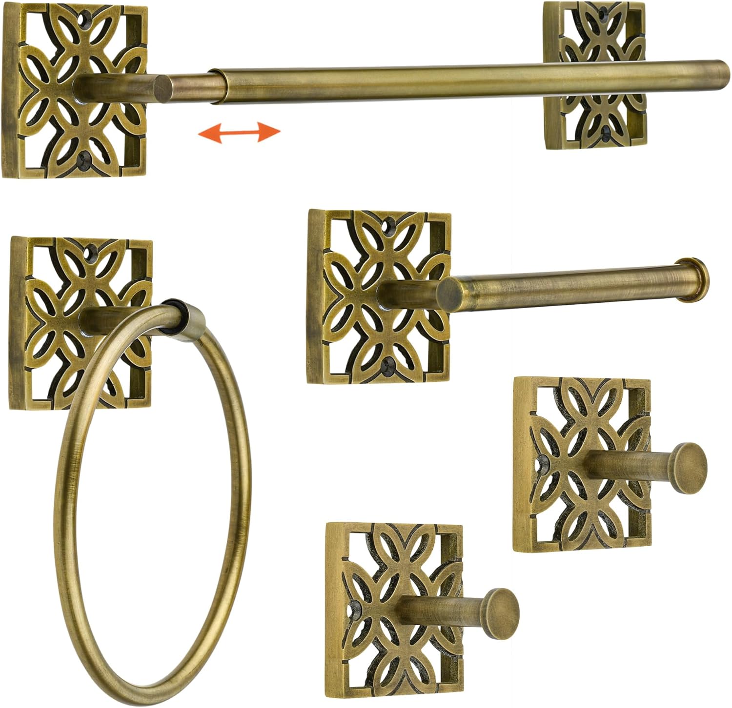 - Versatile Brass Bathroom Hardware for Any Room: Enhance your home with stylish bathroom accessories, featuring an elegant antique brass toilet paper holder and matching pieces designed to pair beautifully with any décor. The classic towel bar for bathroom fits seamlessly in bathrooms, laundry rooms, or kitchens
