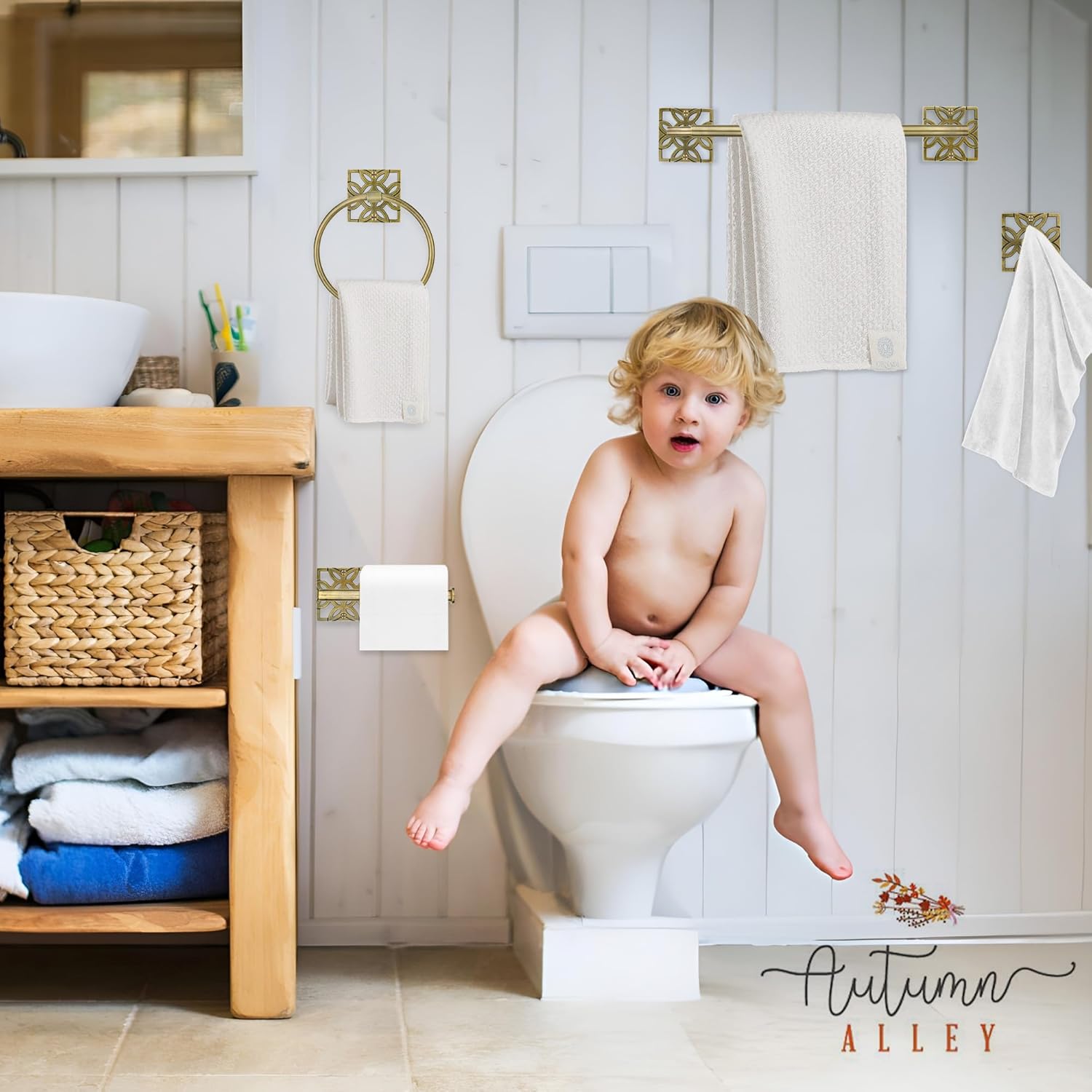 Upgrade your space with the Autumn Alley 5-Piece Brushed Brass bathroom accessories set, thoughtfully crafted to deliver both beauty and functionality. This coordinated bathroom towel rack set includes a durable brass towel bar, towel ring, toilet paper holder, and two hooks—providing complete towel sets for bathroom that elevate any modern or rustic space. Made from premium cast aluminum for long-lasting performance, this collection offers rust resistance and warm brushed brass styling, perfect for those who appreciate luxury bathroom accessories with everyday practicality. Designed to organize and beautify your home, this set includes strong, reliable bath towel bars and matching hardware that install easily with the provided mounting kit. Whether you’re refreshing a master bath, guest bath, or laundry area, this curated bath accessories set delivers cohesive style, dependable function, and a timeless look. Enjoy a seamless upgrade that blends classic charm with modern durability through this complete bathroom accessories set.